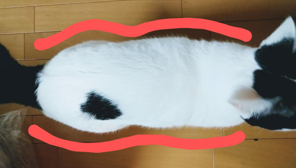 余談ですが、ねこちゃんには腹部にたるみがあります。