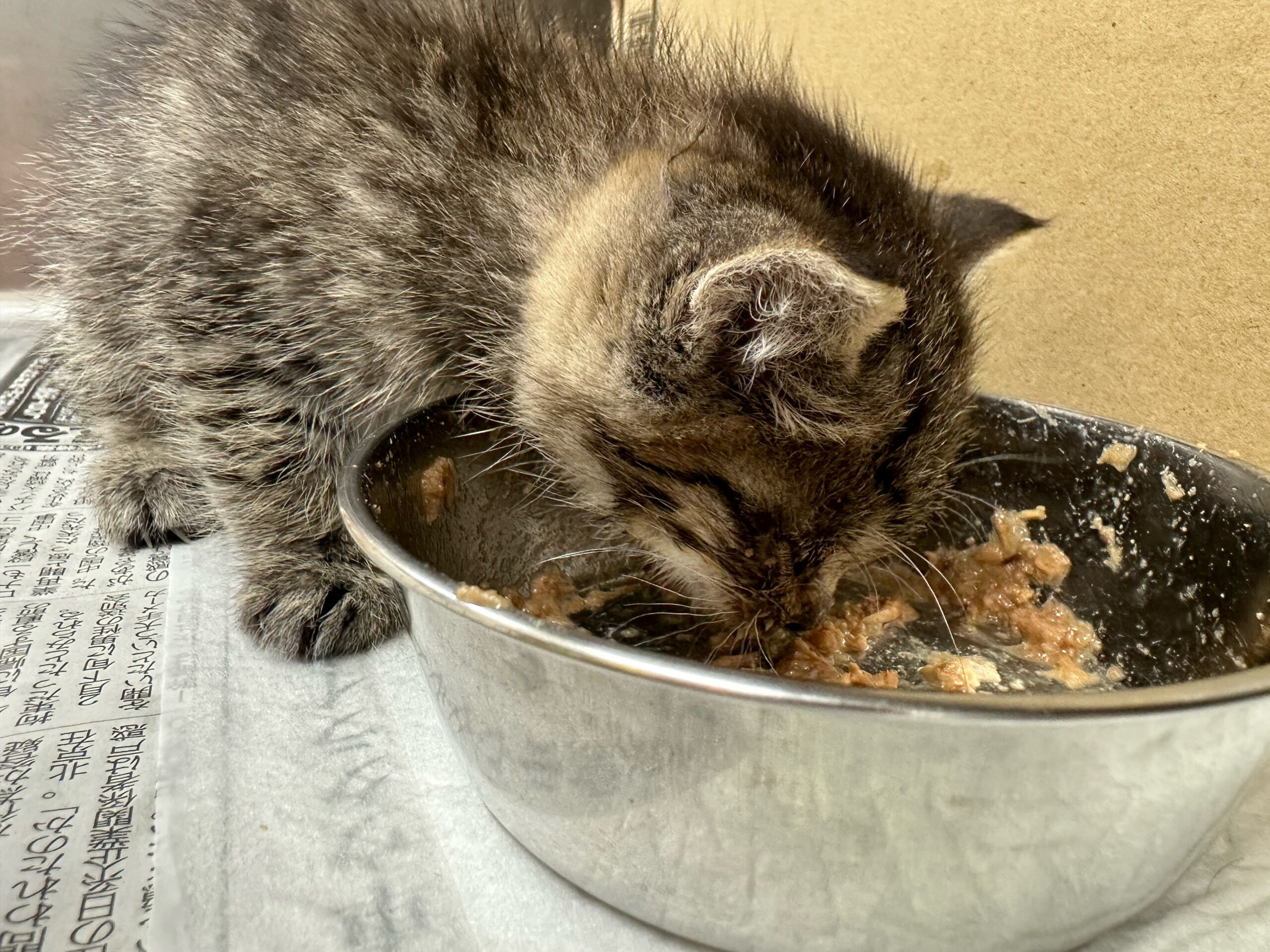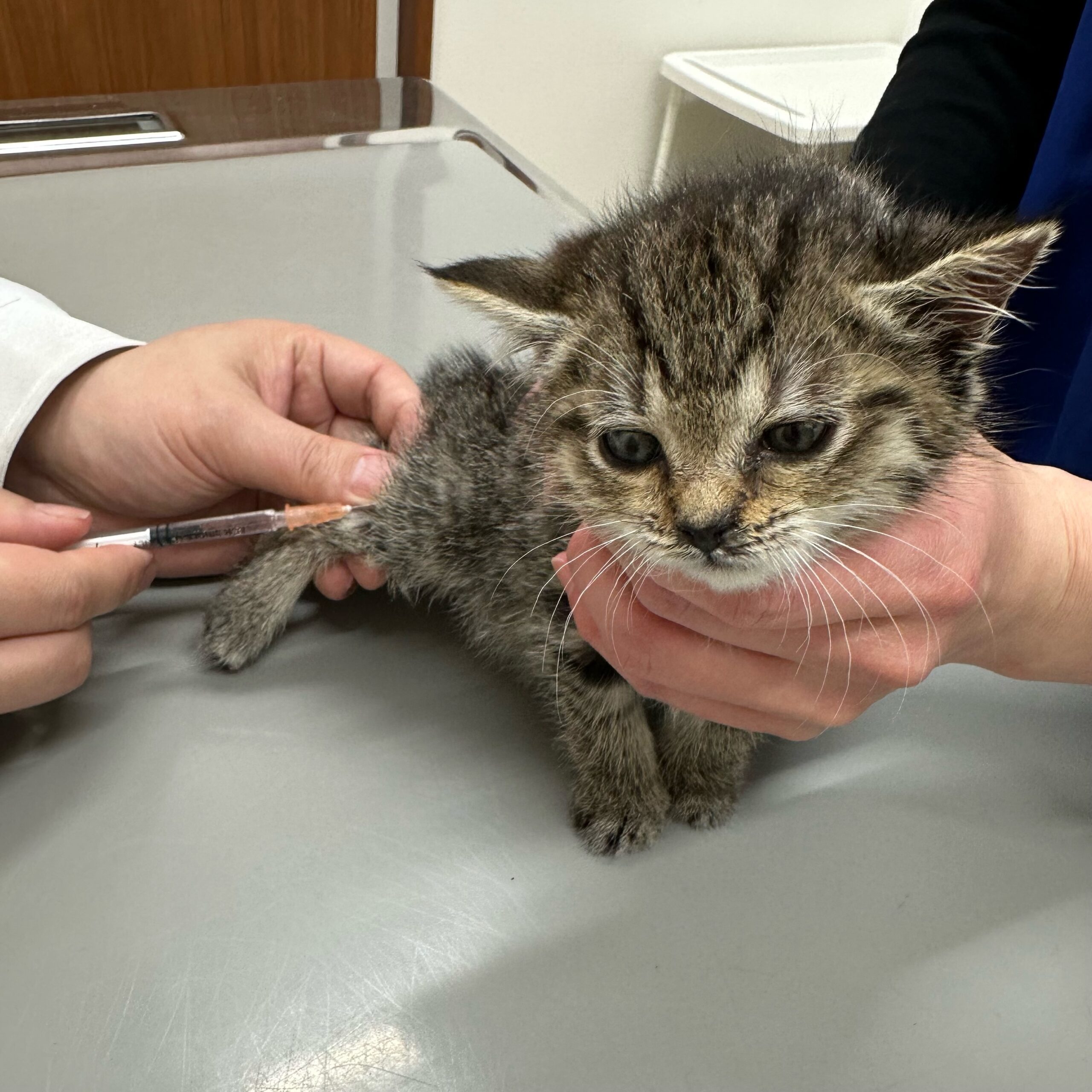 staffblog スタッフブログ HOME > 新着情報 > スタッフブログ > 新しい家族 スタッフブログ 新しい家族 2023.05.25 こんにちは。看護師の西川です🌸 お久しぶりの投稿になってしまいました、、💦 私事ですが、先日カラスに襲われていたところを保護されたネコさんがおりまして、ご縁があり家族としてお迎えすることになりました🐈🐾 目ヤニと鼻水でグシュグシュでしたが、点眼点鼻薬でかなり綺麗になりました👀✨ 女の子ですが食欲旺盛でやんちゃなおてんば娘ですがそんな姿が愛らしいです🥰 今日でお迎えして1週間経つので、初めての混合ワクチンを接種しました💉 なんとも微妙な表情、、、笑 体重も350gから550gに✨ どんな子に育つのかとても楽しみです☺️💕 < 一覧へ >