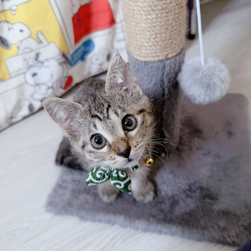 2023.07.07こんにちは。看護師の西川です。 先月迎え入れた猫さんですが、1ヶ月経ったので2回目のワクチン接種をしました💉💦 小柄ではありますが、体重も増えて1.0㎏になりました✨